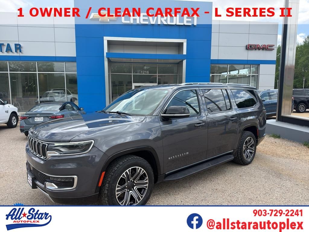 Discover exceptional value with this 2024 Jeep Wagoneer L Series II, a spacious and refined SUV located in Palestine, TX. Powered by a smooth and efficient 6-cylinder 3.0L gasoline engine with rear-wheel drive, this Jeep Wagoneer L delivers confident highway cruising and composed handling for family road trips or daily driving. With a focus on comfort and technology, the Series II trim includes intuitive features like Android Auto and Apple CarPlay for seamless smartphone integration, plus hands-free Bluetooth for effortless calls and media streaming. Safety and driver convenience are front and center with Forward Collision Warning and Adaptive Cruise Control, helping you stay protected and relaxed on long drives. The interior combines premium materials with thoughtful design, offering abundant passenger space, cargo versatility, and upscale touches that make every journey comfortable. This 2024 Jeep Wagoneer L Series II is attractively priced and represents the best price in the area for a vehicle of its class and condition an outstanding opportunity for buyers in Palestine, TX and nearby communities. Whether you need a capable family hauler, a weekend adventure vehicle, or a stylish commuter with advanced safety and connectivity, this Jeep Wagoneer L checks the boxes. Schedule a test drive today in Palestine, TX and experience the blend of power, technology, and comfort that defines this Jeep Wagoneer L Series II. Competitive price quality you can trust.